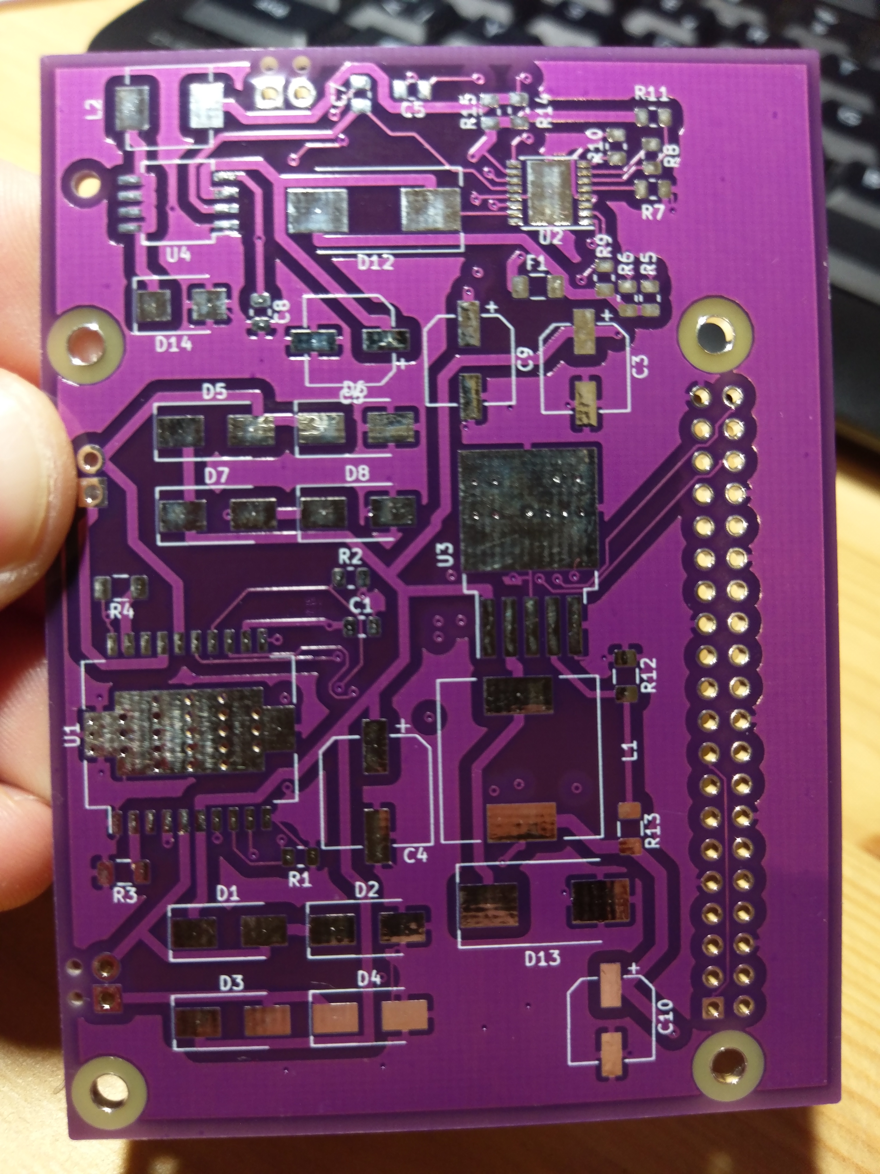 Die Herausforderung an dieser Platine war im wesentlichen alle Bauteile darauf unter zu bekommen, wobei an dieser Platine noch platz für Verbesserungen sind, welche ich erst im nachhinein entdeckt habe. Ich habe die Platine auf der Ober- und Unterseite bestückt. Daraus ergibt sich das man immer wieder Spiegelverkehrt denken und Arbeiten muss, auch wenn man hier durch das Layoutprogramm unterstütz wird. Des weiteren ist darauf zu achten, dass die Anschlüsse von THT Bauteilen nicht in Leiterbahnen, Anschlüsse oder gar Bauteile auf der anderen Seite der Platine hinein ragen.